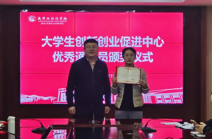 会上,举行了2024-2025学年度优秀创新创业指导教师颁奖仪式,戴雅诗、康可馨(宜宾)、周虹科等16位教师荣获“创新创业优秀指导教师”称号,他们以专业指导助力学生创意落地、项目成长,成为双创教育一线的中坚力量。经验分享环节,教育与体育学院李星、国际语言文化学院韩佳明两位教师代表,结合自身实践从项目选题精准定位、跨学科团队搭建、赛事全周期备战等维度分享实操经验,为在场教师提供了可借鉴的教学范本。此外,会议还为大学生创新创业促进中心优秀通讯员丁星月颁奖,表彰其在创新创业政策宣传工作中的积极贡献。